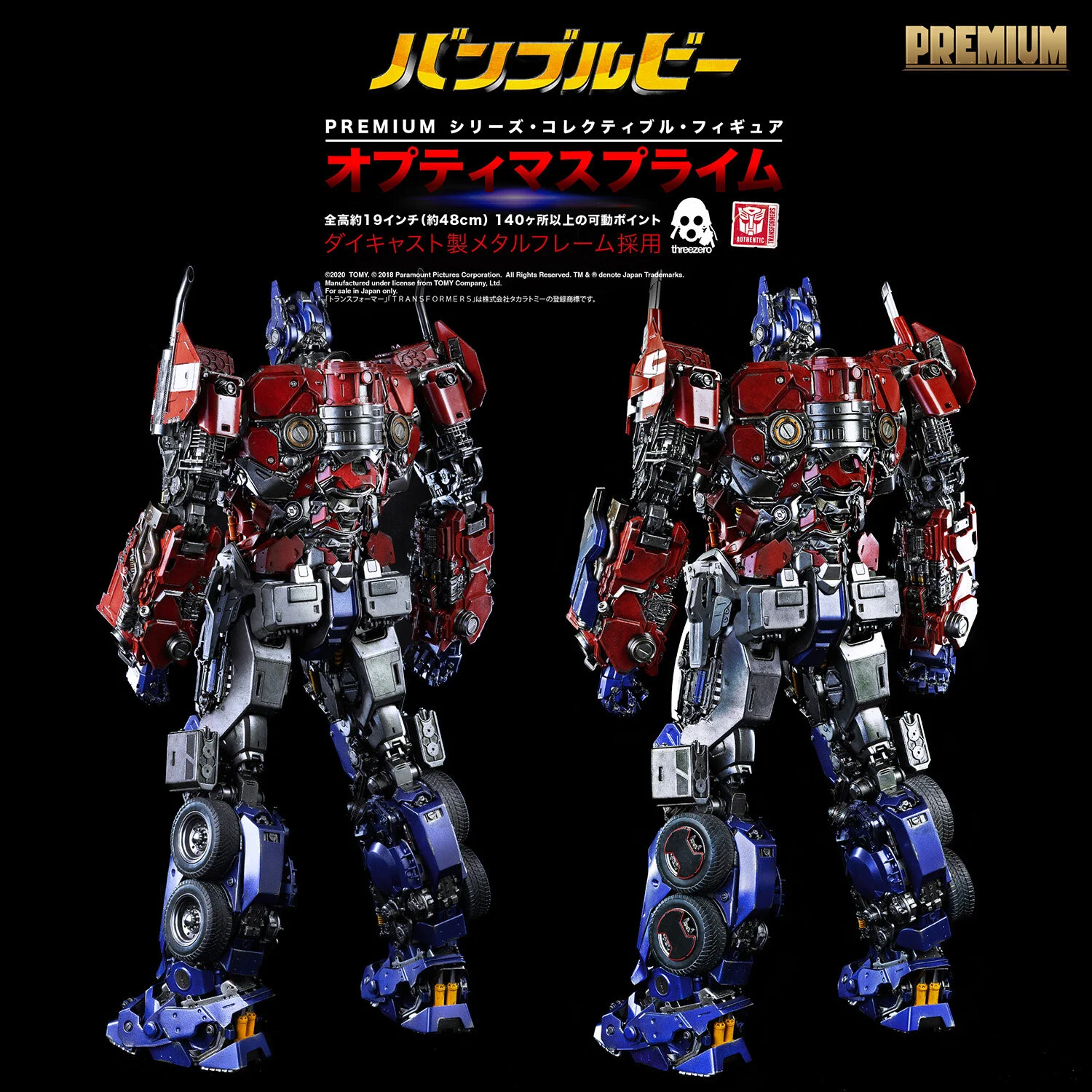 2019年国内公開のトランスフォーマー映画『バンブルビー』より、「オプティマスプライム」がダイキャスト製メタルフレームを採用した全高約48cmのフル可動ハイエンドフィギュアとなって登場!